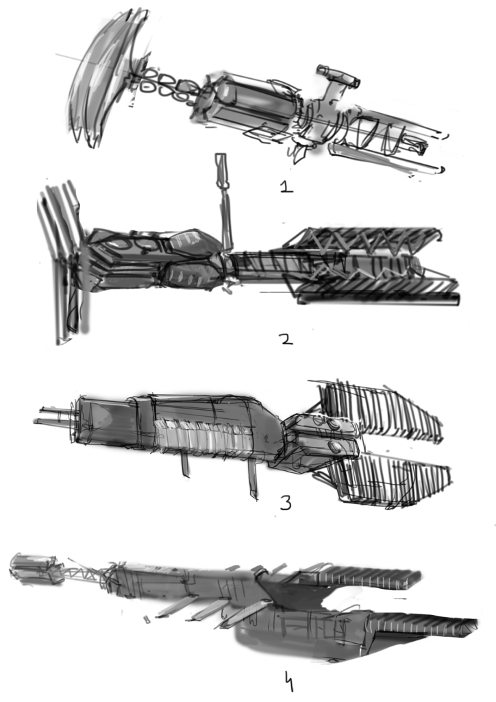 ELI SASICH – For the Morinda, I had a vague idea of the shape I was after. The articulated dual engines or nacelles were a concept I had for a different type of propulsion/steering mechanism. I thought it would be a unique and intuitive way to depict roll and pitch. That was really born out of the idea that there is no “up” or “down” in space. When the Morinda approaches the ATROPA, it’s not on the same plane, meaning Cole has to reorient his ship to the proper course. I really wanted to depict that, because it seems that every time I see an approach sequence in sci-fi, the two vessels are always perfectly aligned with each other.