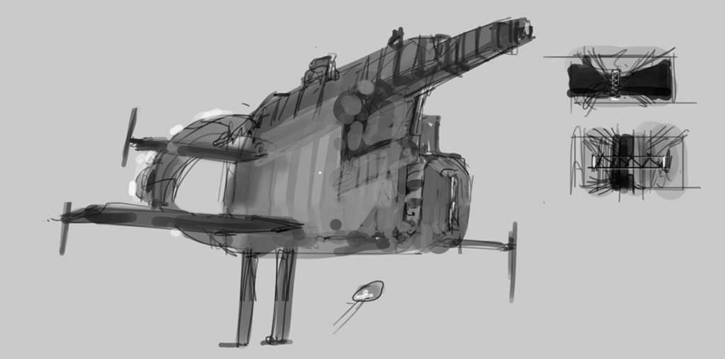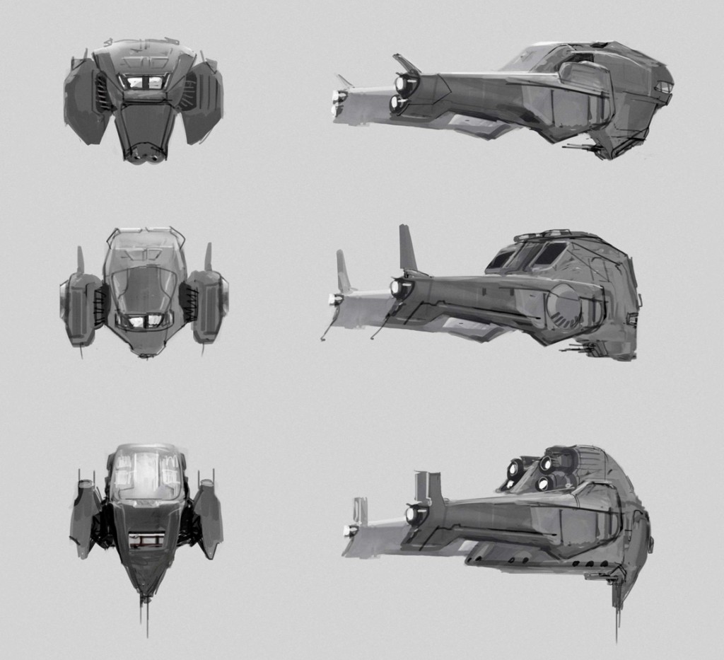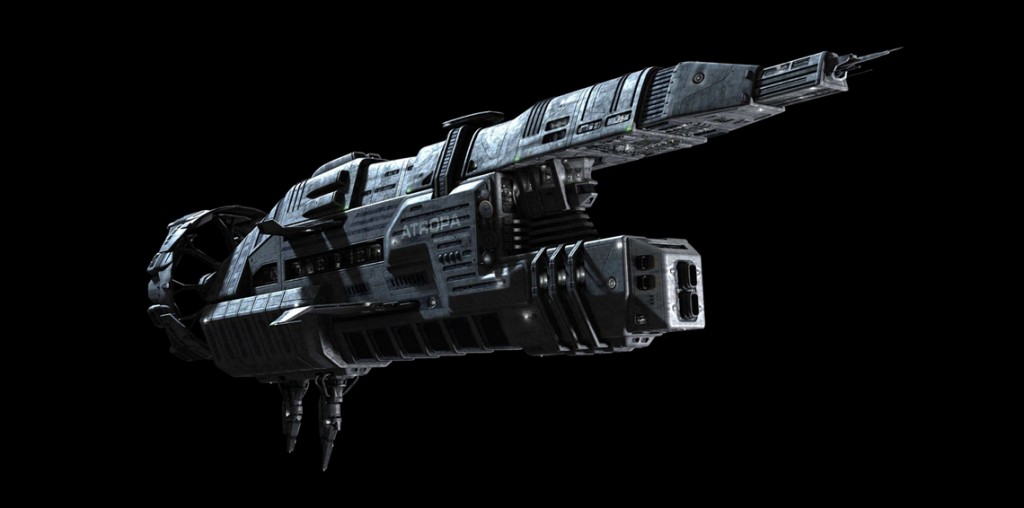 The ATROPA was more difficult. We explored many different shapes and sizes – some were pretty out there in terms of design. Ultimately, it came down to finding something that fit within our world. We needed the ATROPA to quickly read as a large industrial ship to the audience. Obviously we took some design cues from the Sulaco from Aliens – but that bold, elongated shape seemed to read the best in the short amount of screen time.