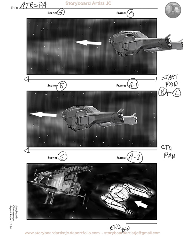 ELI SASICH – We had eight or nine pieces of concept art done by artists from around the world. Ioan Dumitrescu worked mostly on the designs for the ATROPA and Cole’s ship, the Morinda. Mike Sebalj and Roger Adams did some really nice character and environment designs for us. We also had storyboards done for all our exterior space sequences – artist Jean Claude De La Ronde provided those.