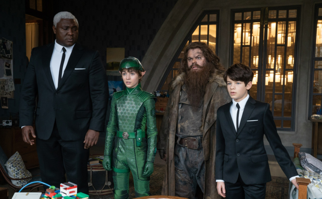 Artemis joins forces with Butler (Nonso Anozie), Holly (Lara McDonnell) and Mulch Diggums (Josh Gad) to repel a fairy attack on Fowl Manor. Photograph by Nicola Dove.
