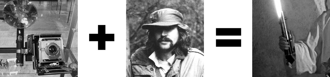 The two lightsabers used in the film were also built by Christian using found objects. “In this old photography studio, I found a box with a Graflex inside,” recalled Christian. “The Graflex was a press camera from the 1940s. You could bolt a flash on the side; it had a round chromium disc that made the flash really bright, and the handle had a red fire button. And that’s what became the laser sword. I just sat in my office with superglue, stuck a T-strip round the handle, put a D-ring on the end and stuck on bits from a pocket calculator. It was weighty and it looked beautiful. I think I made it for about £8.”