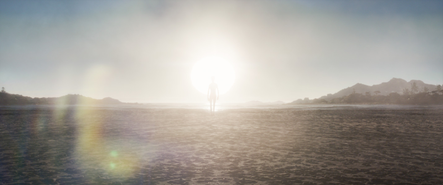 The beach sequence was probably the scene that took the longest for the compositing team. It starts with this guy dreaming about being on a beach and then it quickly turns into a nightmare where he finds himself in a desert.